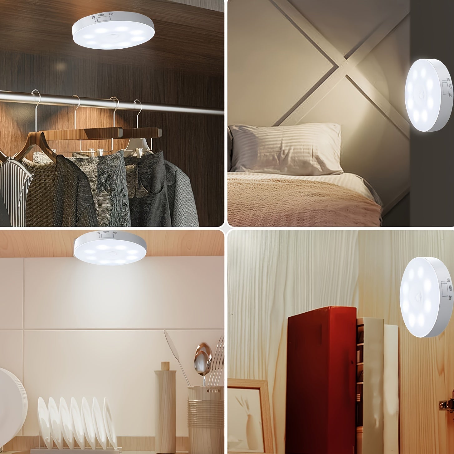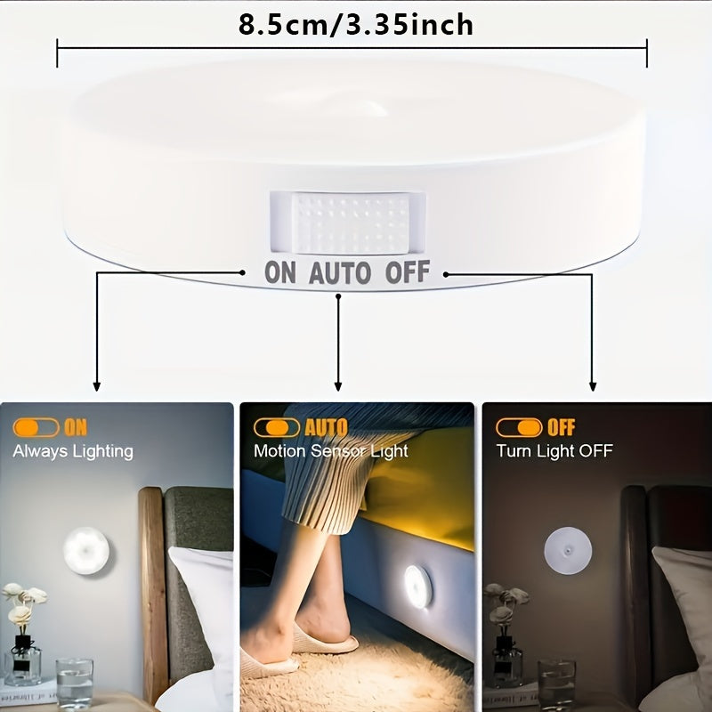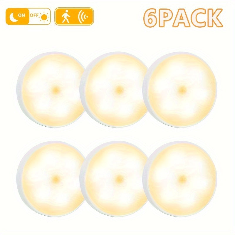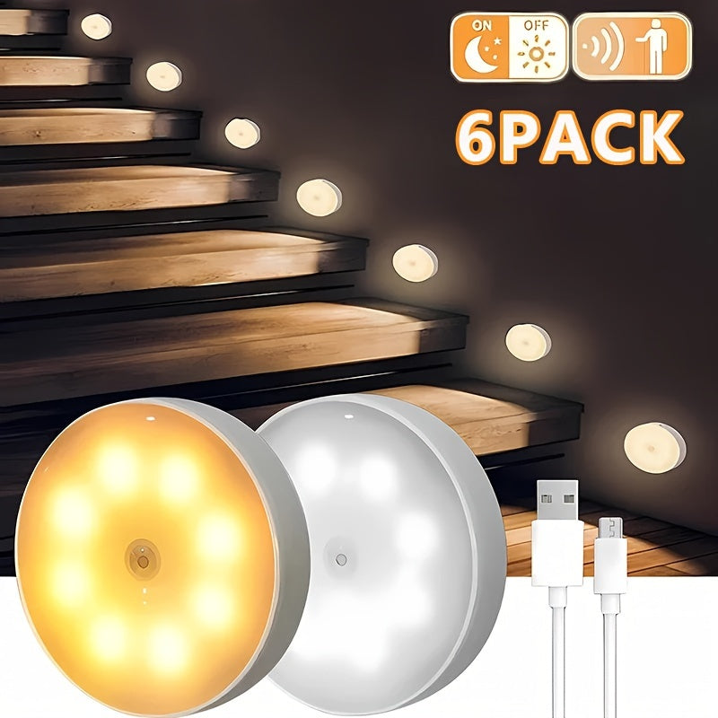 6 Lámparas LED Recargables USB con Sensor de Movimiento, Magnéticas y de Doble Luz (Blanco Frío/Cálido) para Escaleras, Closets, Dormitorios y Más